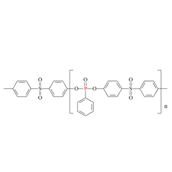 Polysulfonyldiphen ylenephenyl Phosphonate is a polymeric halogen-free flame retardant with a high decomposition temperature (350°C) and a controlled melting point of 130-180°C. It is particularly suitable for the flame retardant modification of polyester spinning and film materials, and can also be used as an auxiliary flame retardant in other plastics such as PMMA, PC, ABS and PP. With an addition of 4%-7%, it has high transparency, good physical and mechanical properties, good processing fluidity and a wide range of applications. In addition, due to the presence of sulphur in the structure, it can improve the corrosion resistance of the polymer.